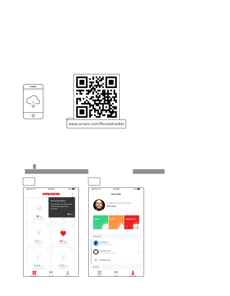 Laden Sie die Prozis Go App aus dem Apple App Store® oder Google Play Store® herunter.