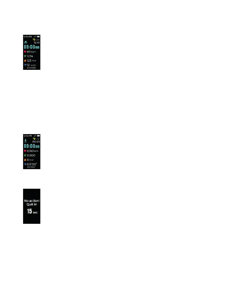 • Si no se realiza ninguna acción, la pulsera de actividad saldrá del Modo deporte automáti-