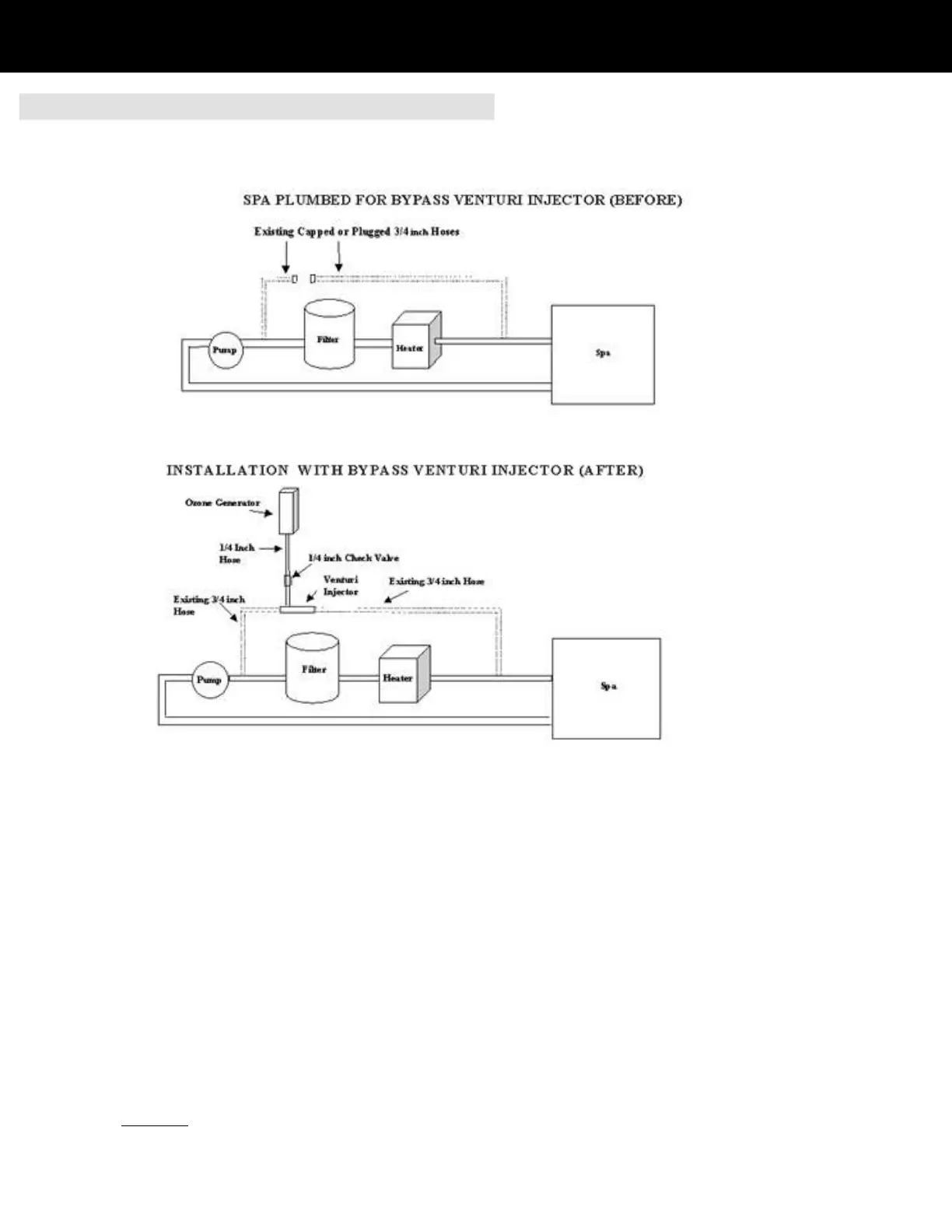 Note: This installation is for spas which have been plumbed for a bypass venturi injector type installation.