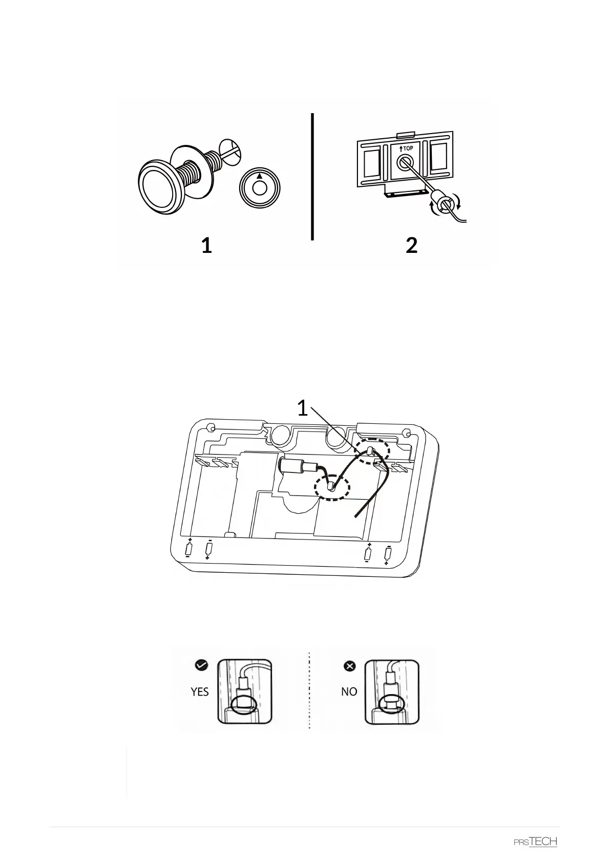 • Pass the camera cable through the hole of the backplate and place the backplate on the door using the