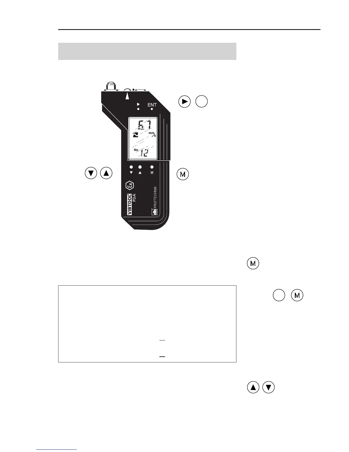 Turn on VIBTOOL by pressing the ‘M’ key until the LCD