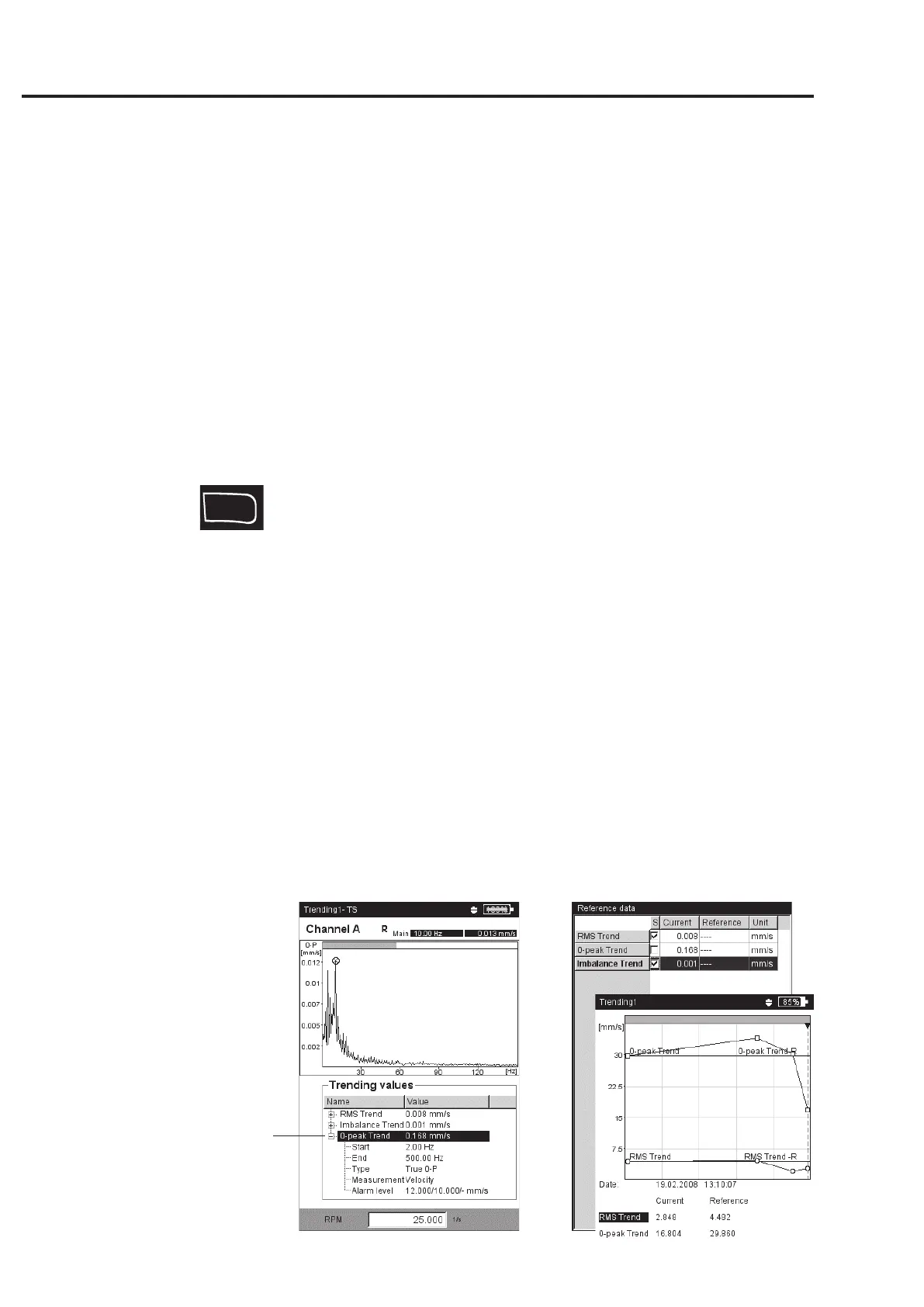measurement values and - if set up - the reference values.