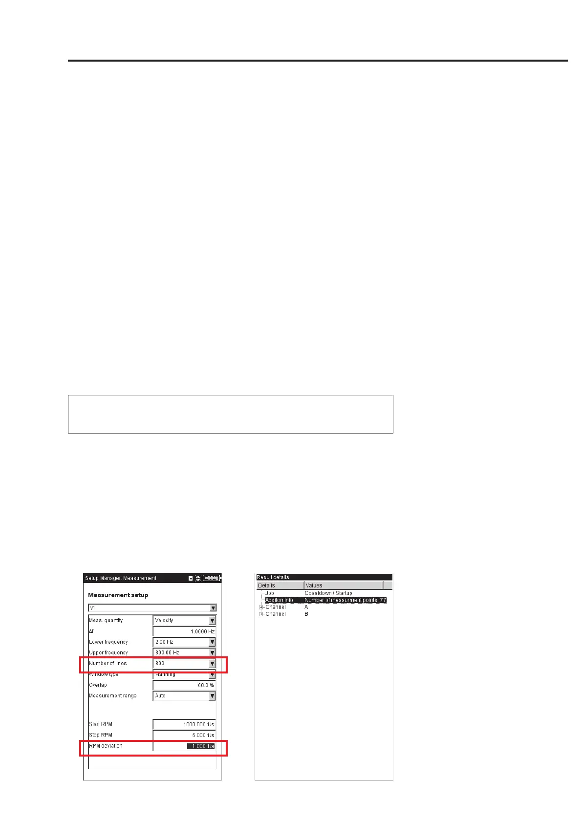 The 'RPM deviation' parameter in the measurement setups set at