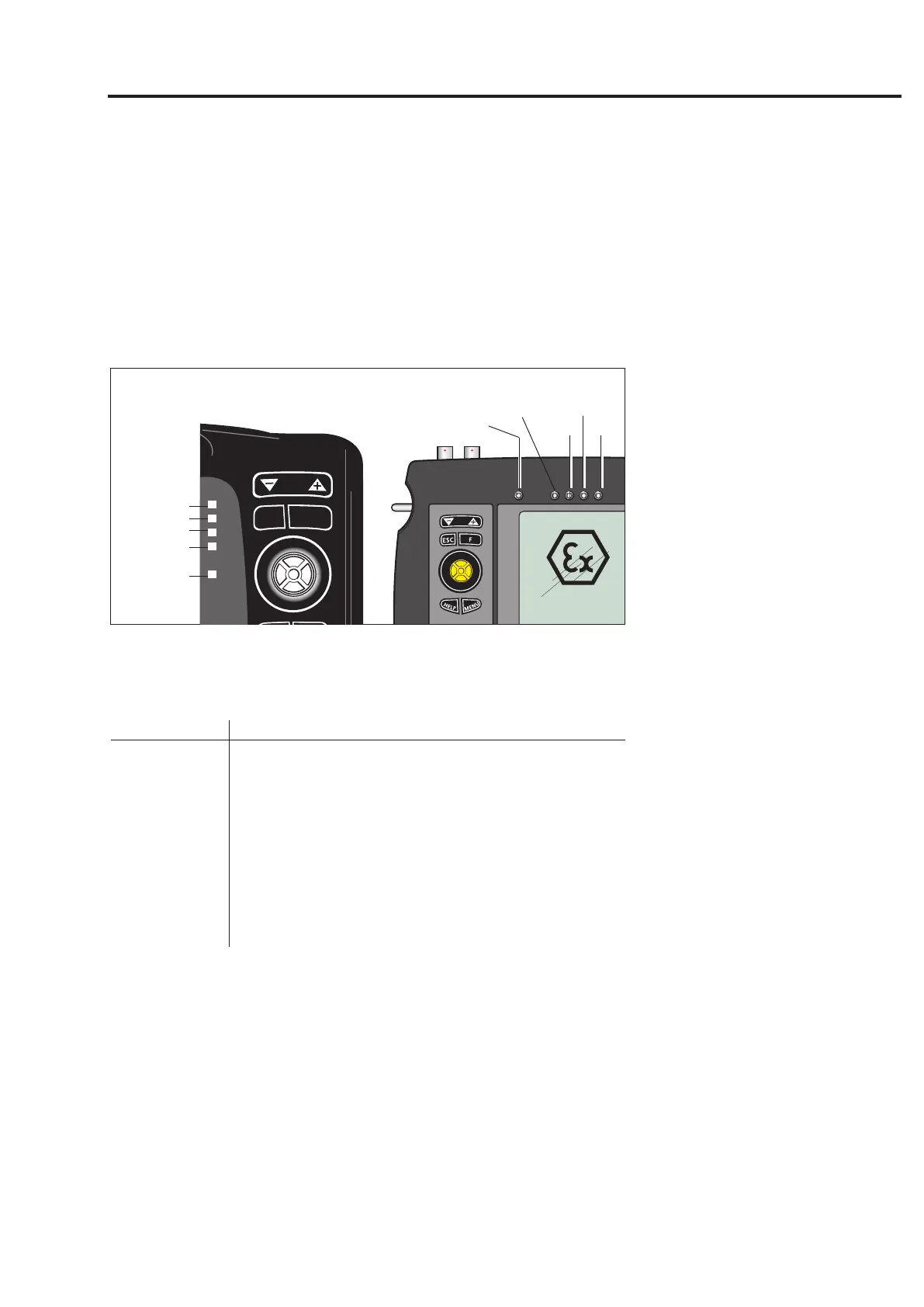 Four colored LEDs indicate threshold violations, errors, and system