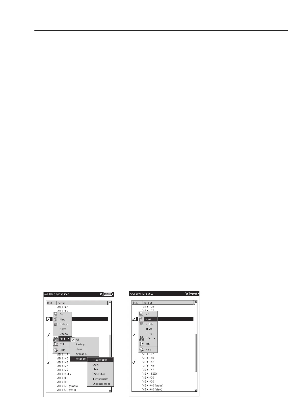 • In the transducer list press the MENU key.