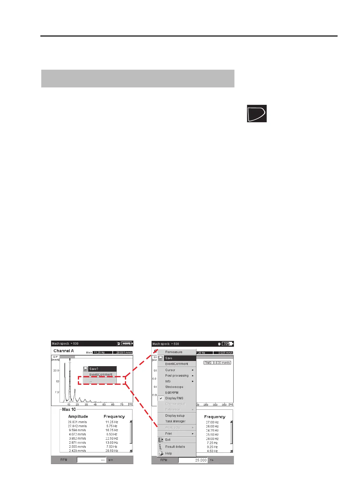 up with the MENU key in the results screen are available for this