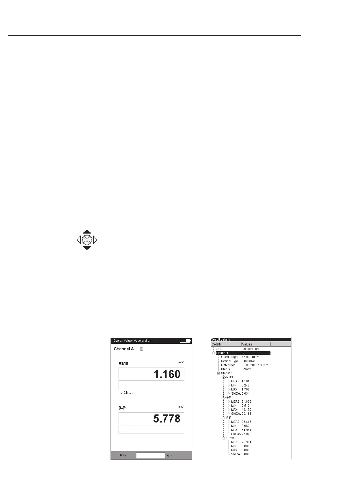 screen. The RPM appears in the lower area. If the limit values are