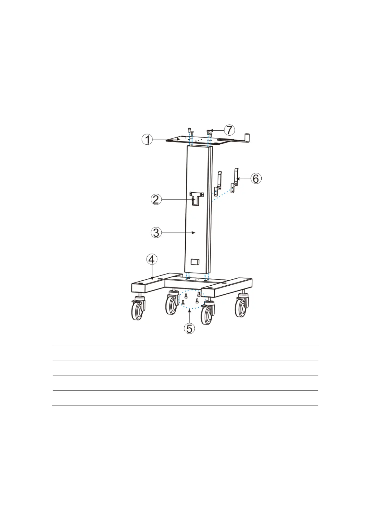 1) Install the trolley pole into the trolley base, and use the four M5 hexagon screws ⑤ to
