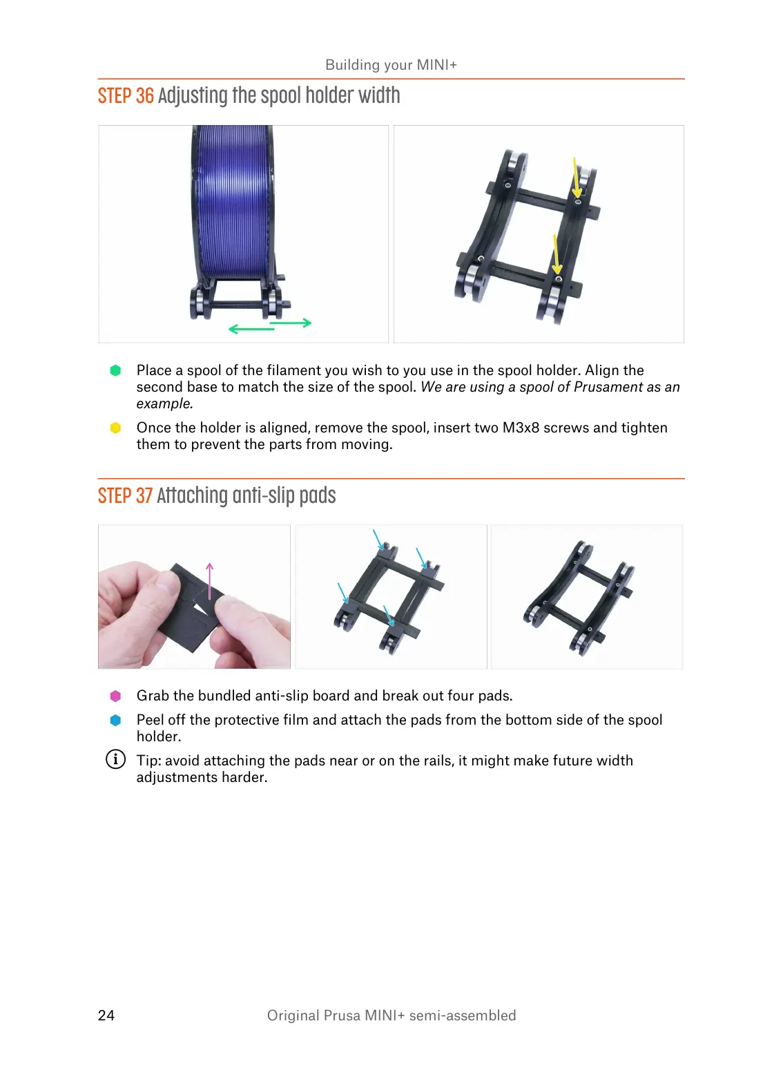 Once the holder is aligned, remove the spool, insert two M3x8 screws and tighten