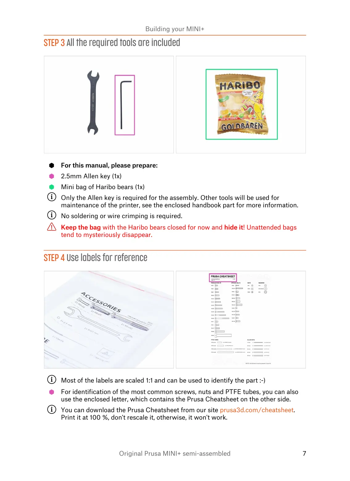 use the enclosed letter, which contains the Prusa Cheatsheet on the other side.