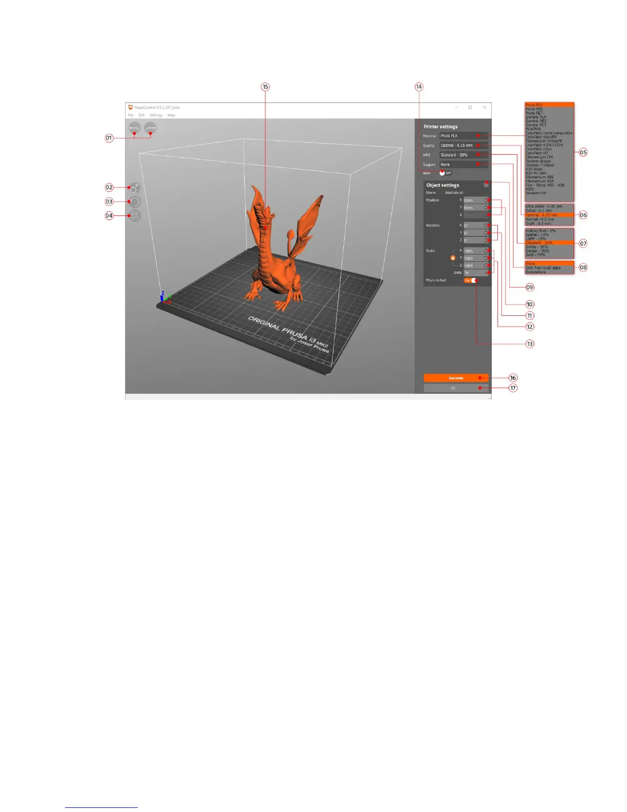 13. Place on bed button turns on automatic placing of objects to Z=[0]
