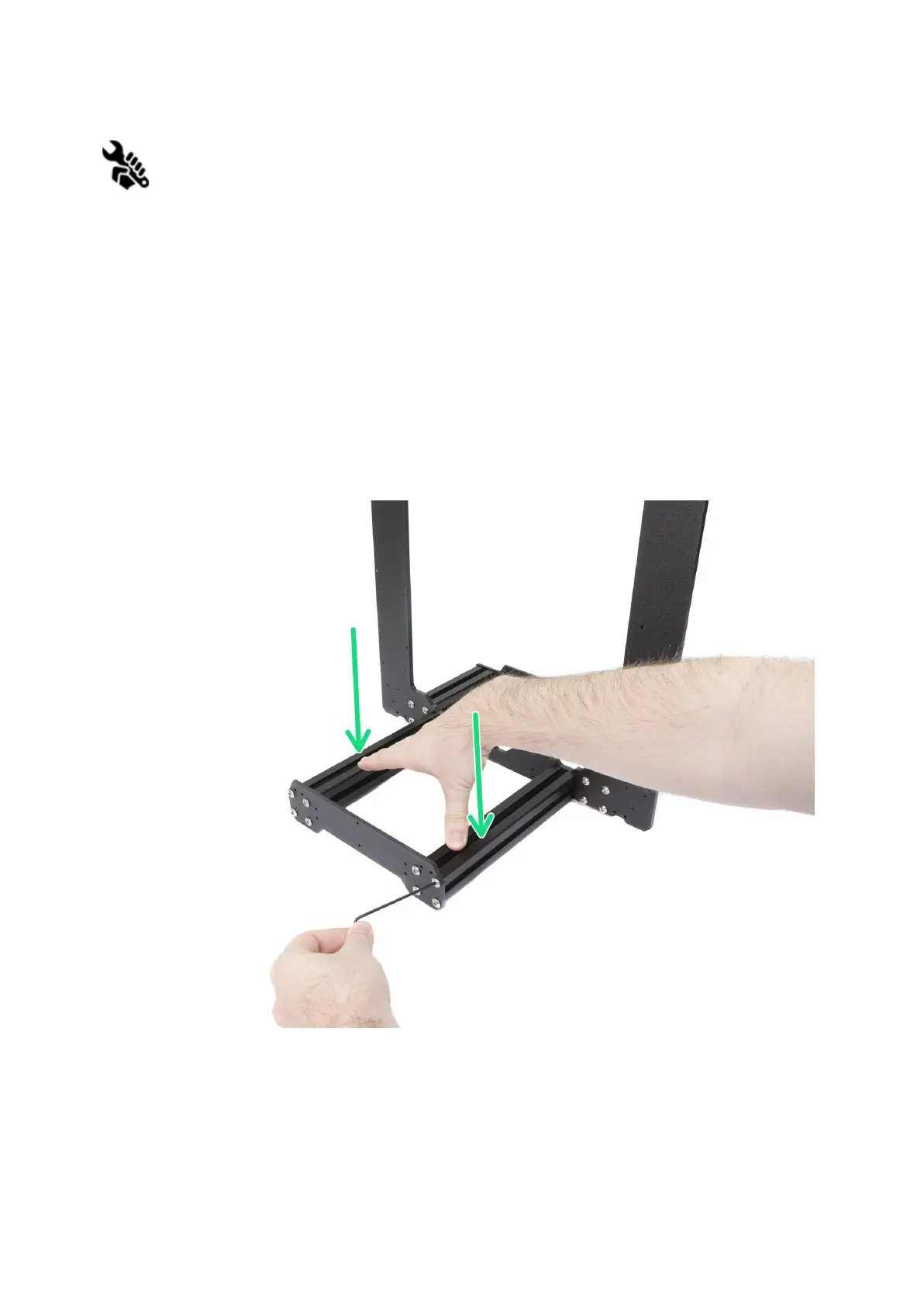 ● In case you find some imperfections, release the screws, press the extrusions