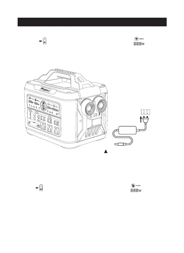 The icon“ ” will light up, show the current input power in watts “ ” and