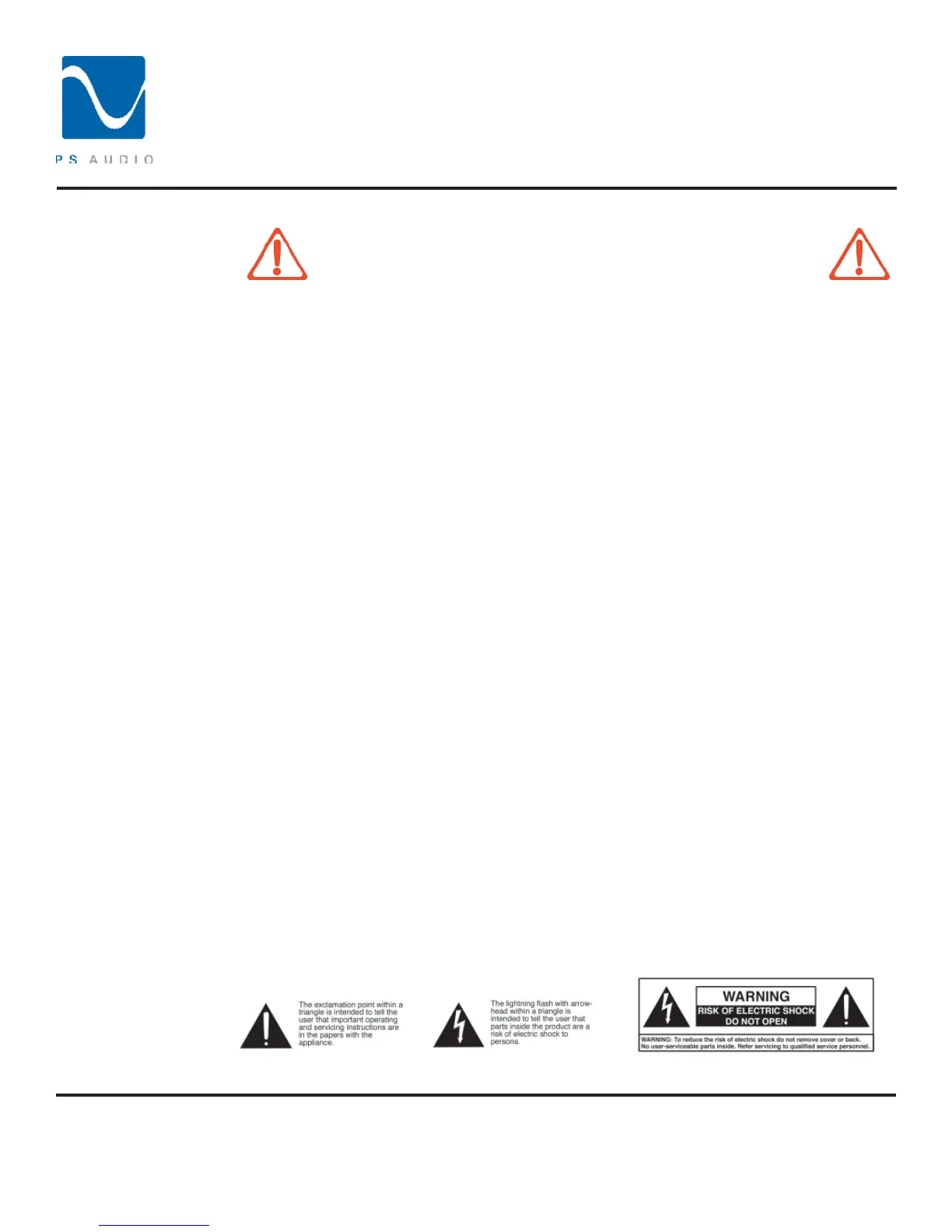 THERE ARE NO USER-SERVICEABLE PARTS INSIDE ANY PS AUDIO PRODUCT. REFER ALL