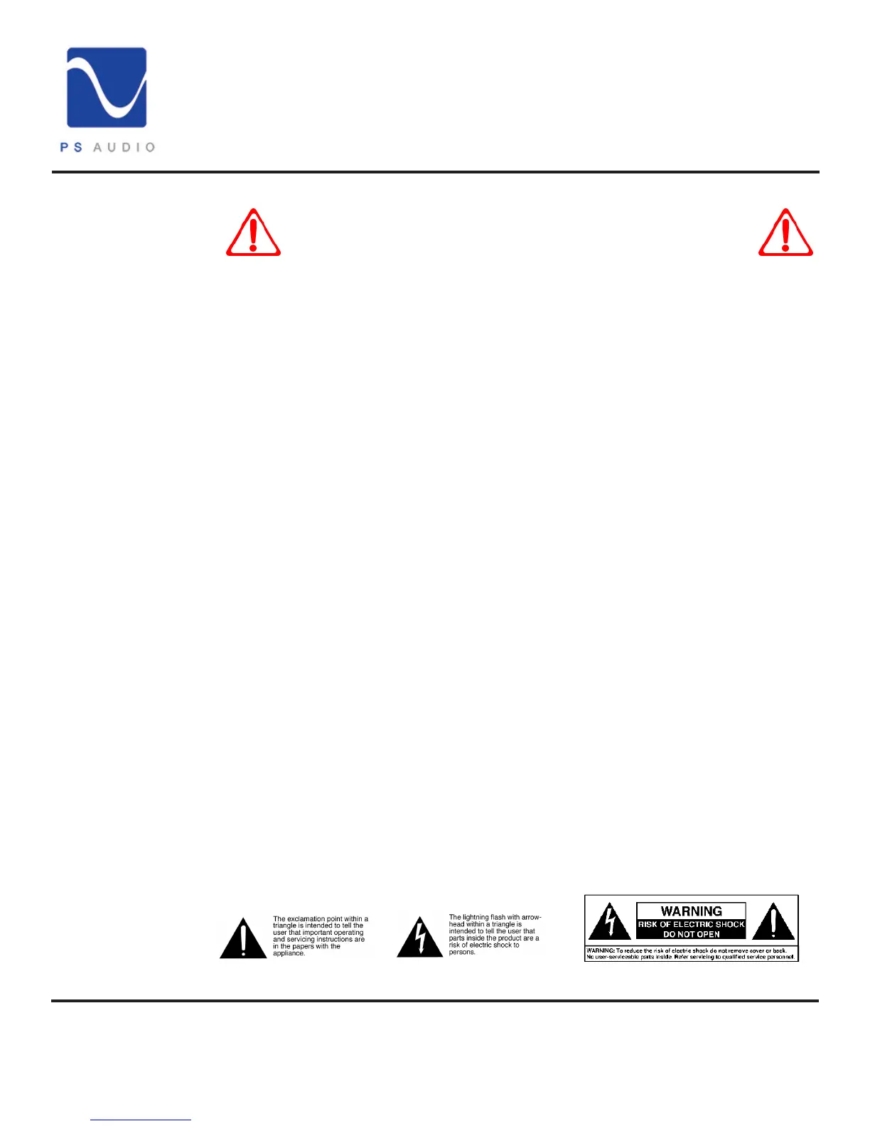THERE ARE NO USER-SERVICEABLE PARTS INSIDE ANY PS AUDIO PRODUCT. REFER ALL