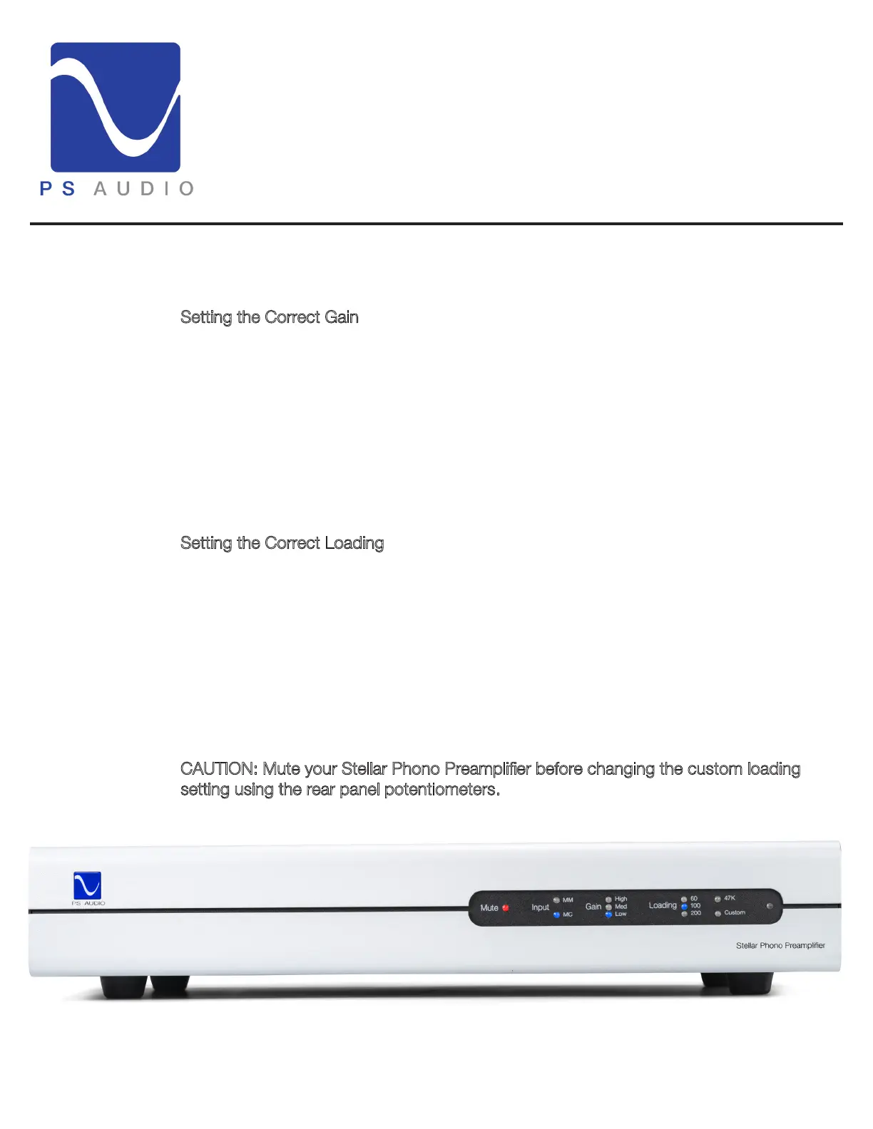 CAUTION: Mute your Stellar Phono Preamplifier before changing the custom loading