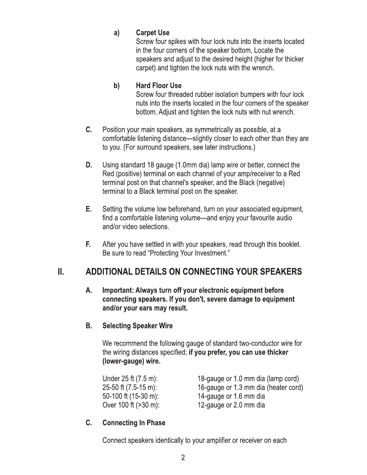 PSB Imagine T3 - CONNECTING YOUR SPEAKERS; Selecting Speaker Wire Gauge; Ensuring Correct Speaker Phase