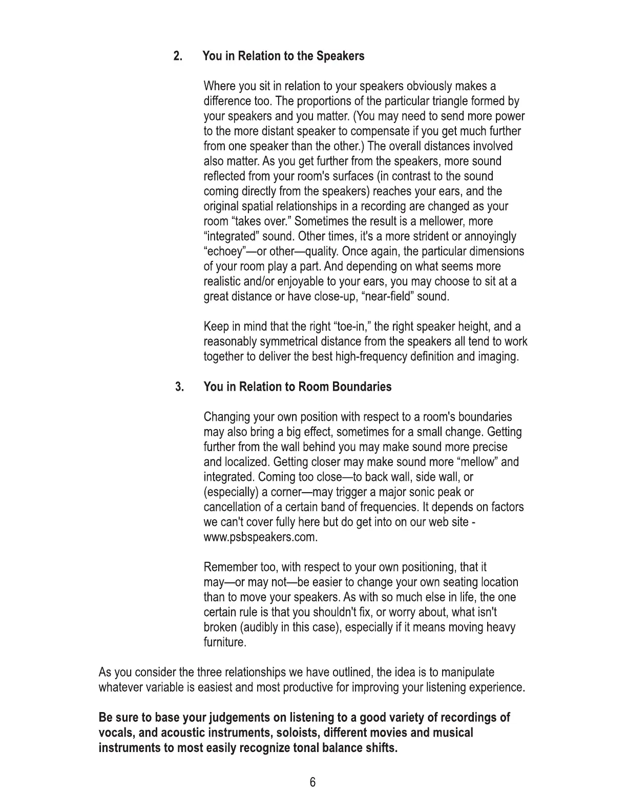 PSB Imagine T3 - Listener Position vs. Speakers; Listener Position vs. Room Boundaries
