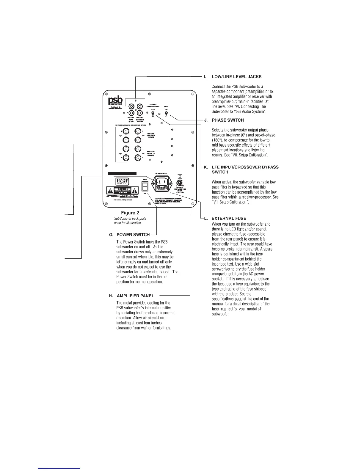 PSB SubsSonic SubSonic5i - PHASE SWITCH; LFE INPUT;CROSSOVER BYPASS SWITCH