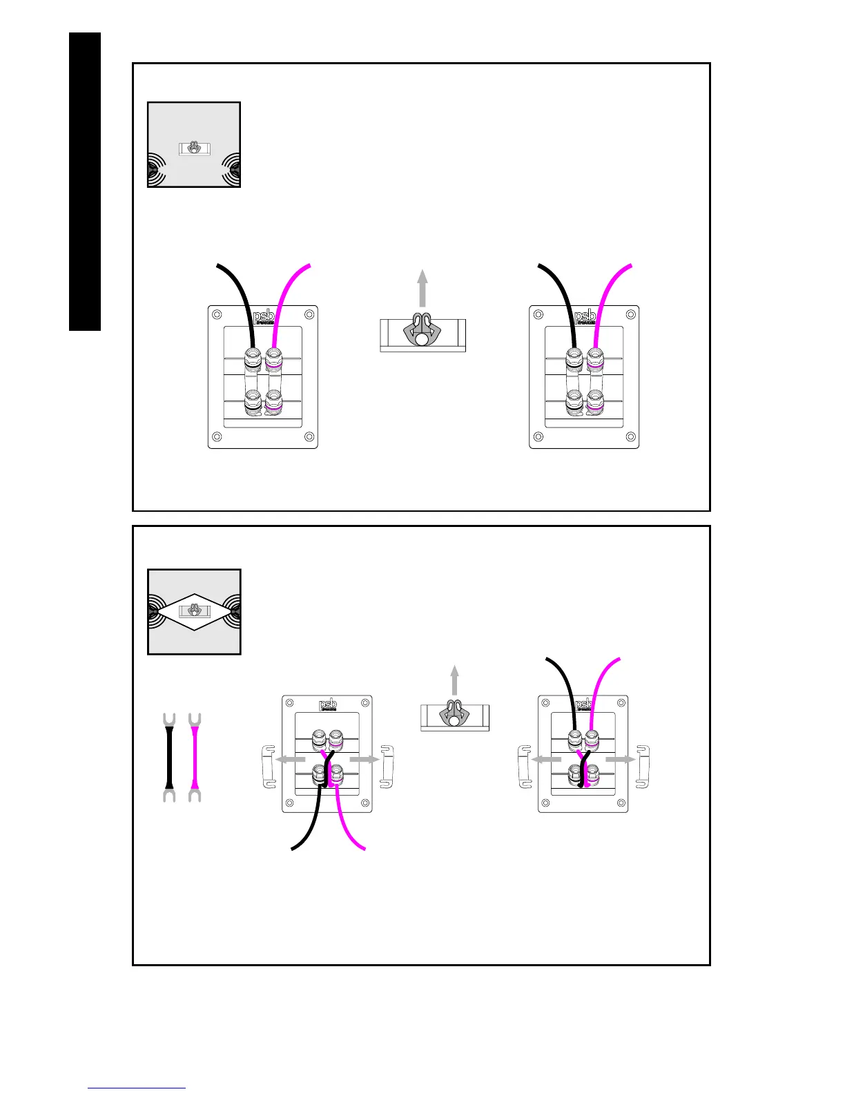 Replace gold-plated jumpers with supplied wire jumpers and connect crisscrossed as shown.