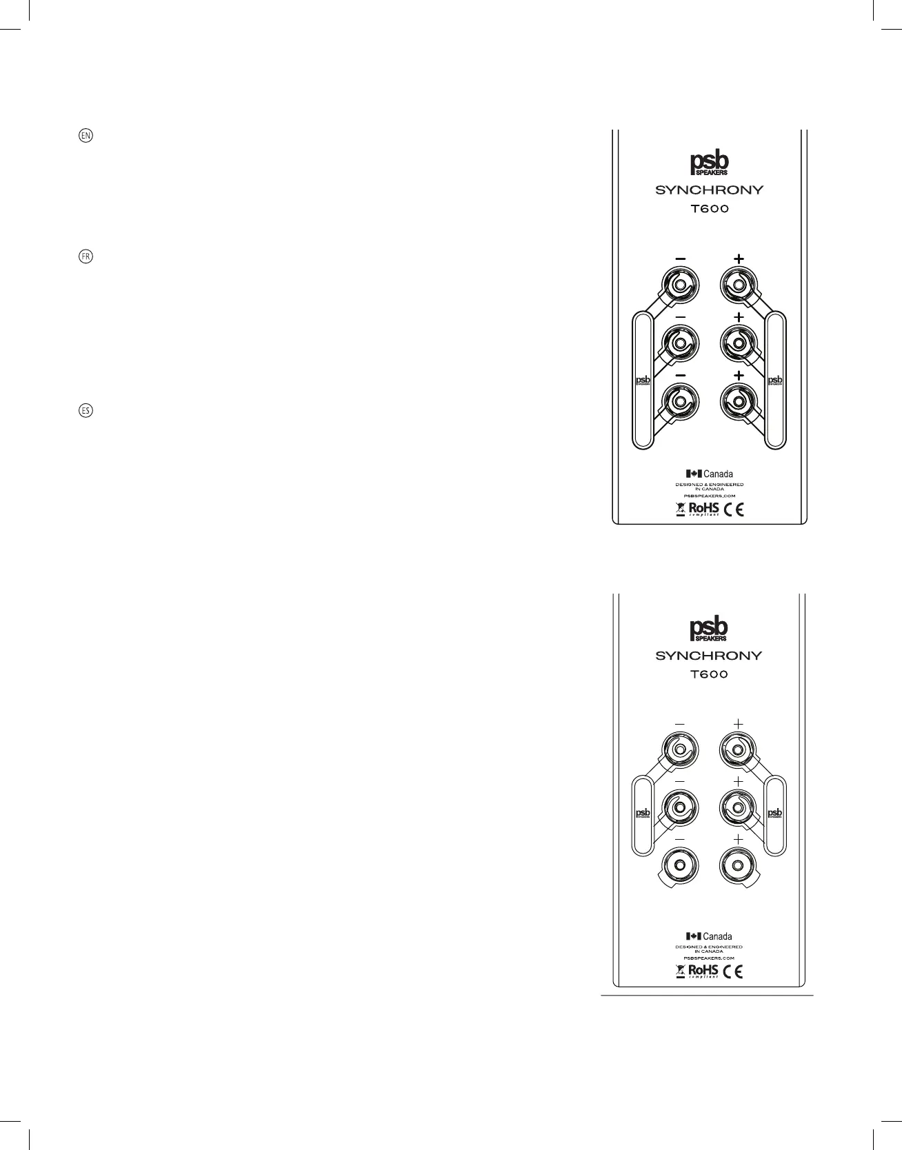 El Synchrony T600 tambien incluye dos puentes de conexi6n de terminales para los altavoces.