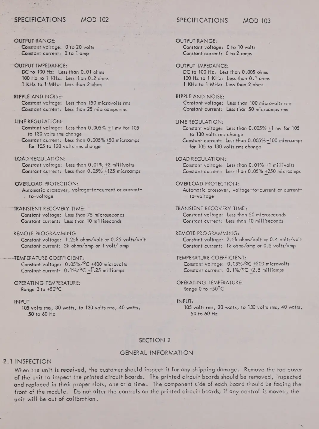 PSC 101 - Specifications; General Information; 2.1 Inspection
