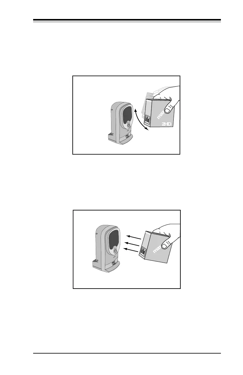 center of the front scanner window. Move the product with the bar
