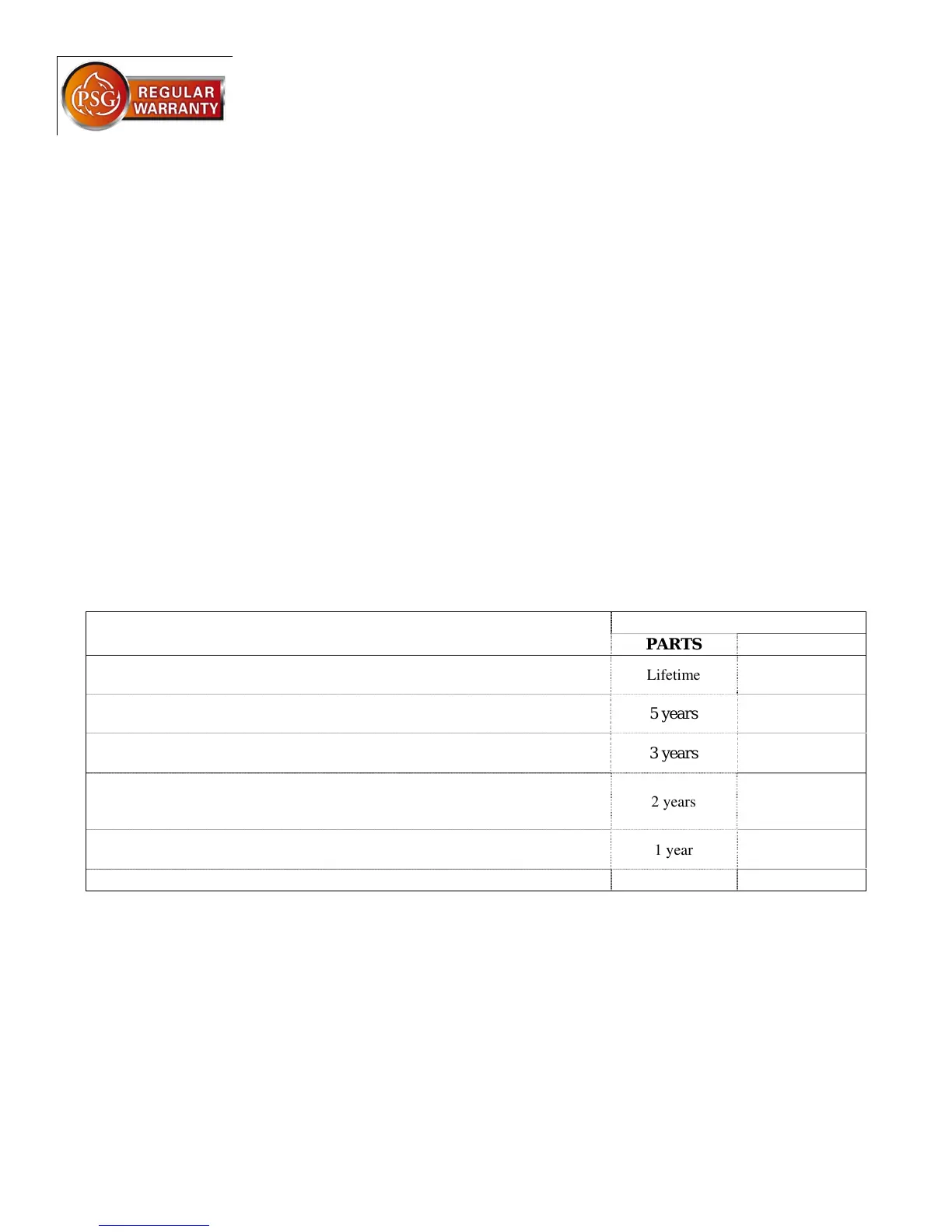 PSG LIMITED LIFETIME WARRANTY (REGULAR)