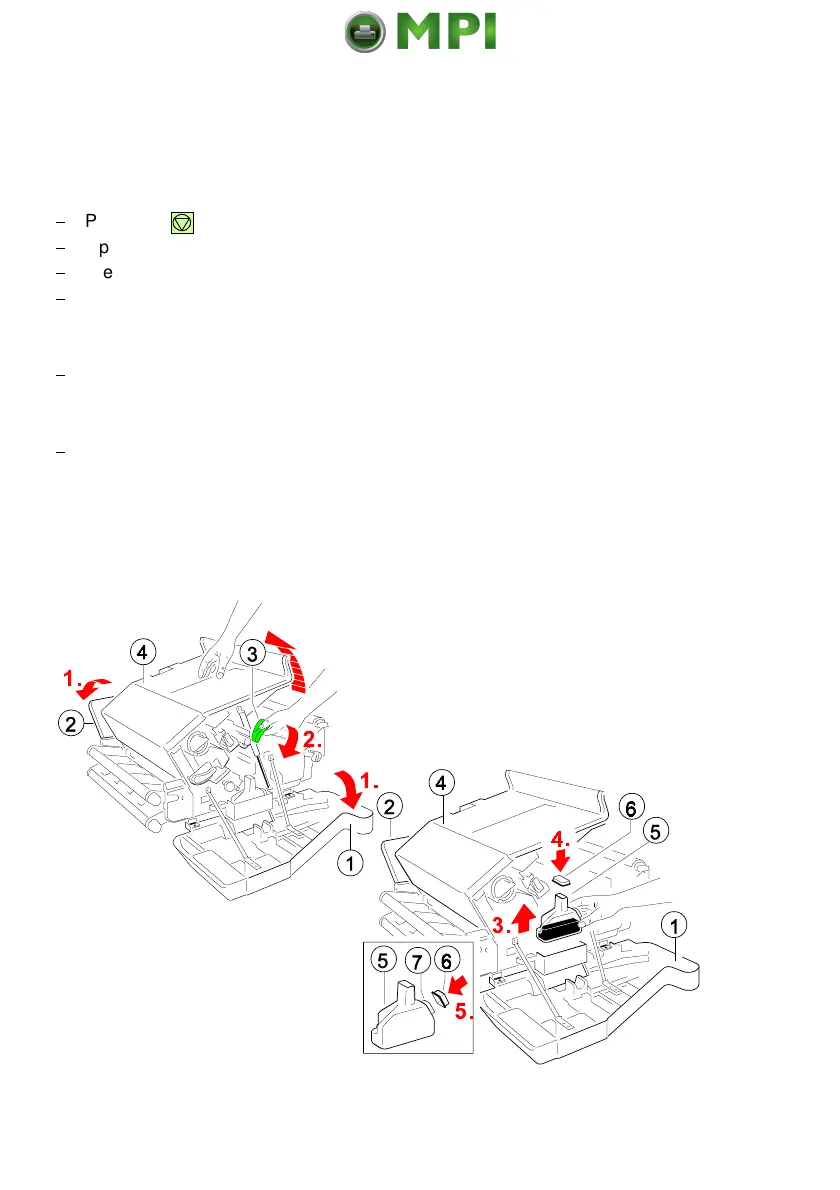 Press the green lever (3) to open the top cover (4), illustrated below.