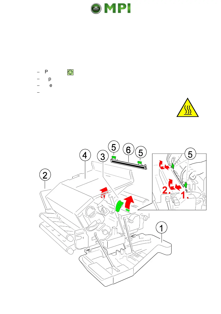 Now remove the Cleaner Felt (6) by pressing both green levers (5) in