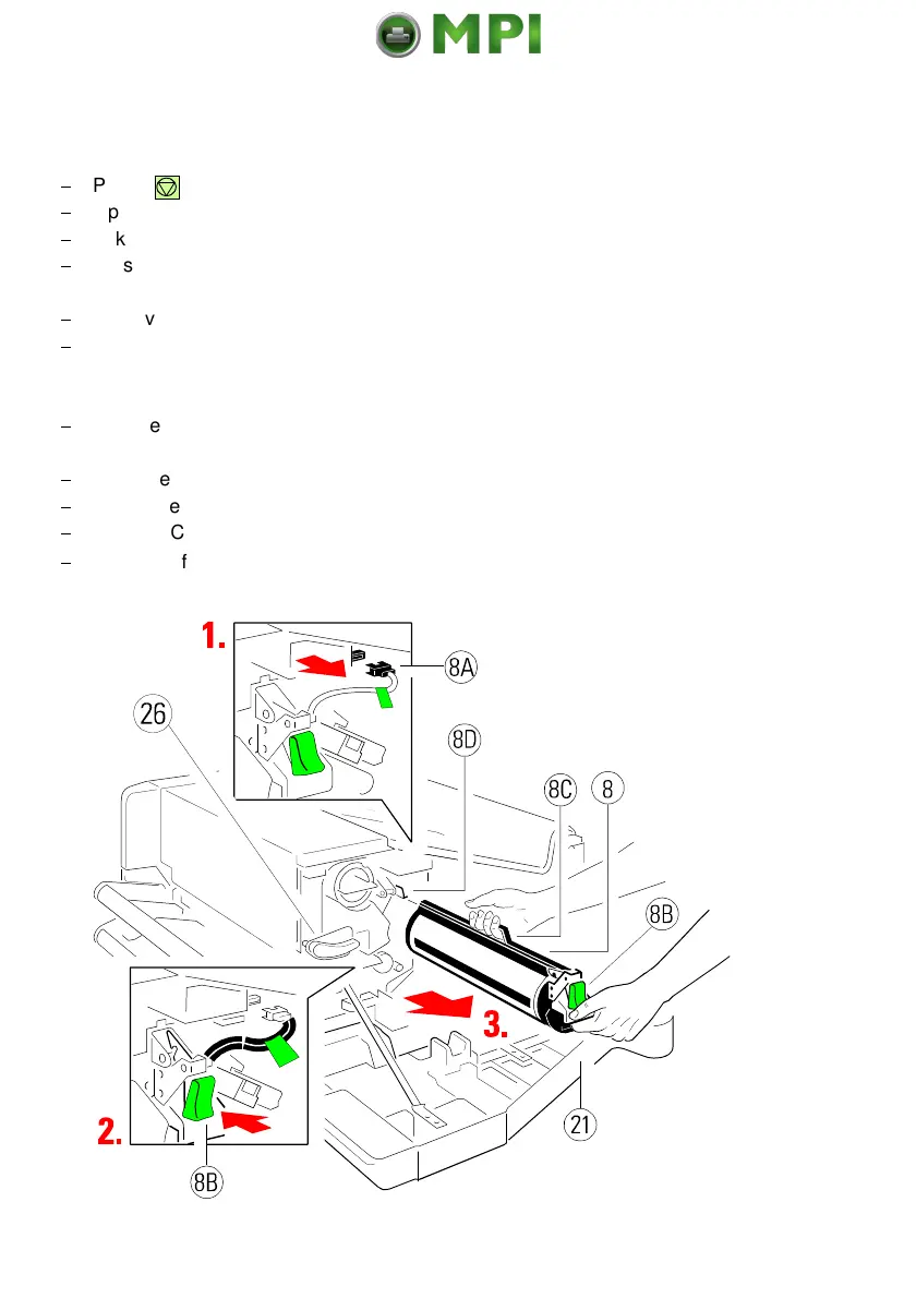 Press lever (8B) down and pull the PC Cartridge (8) out of the housing until