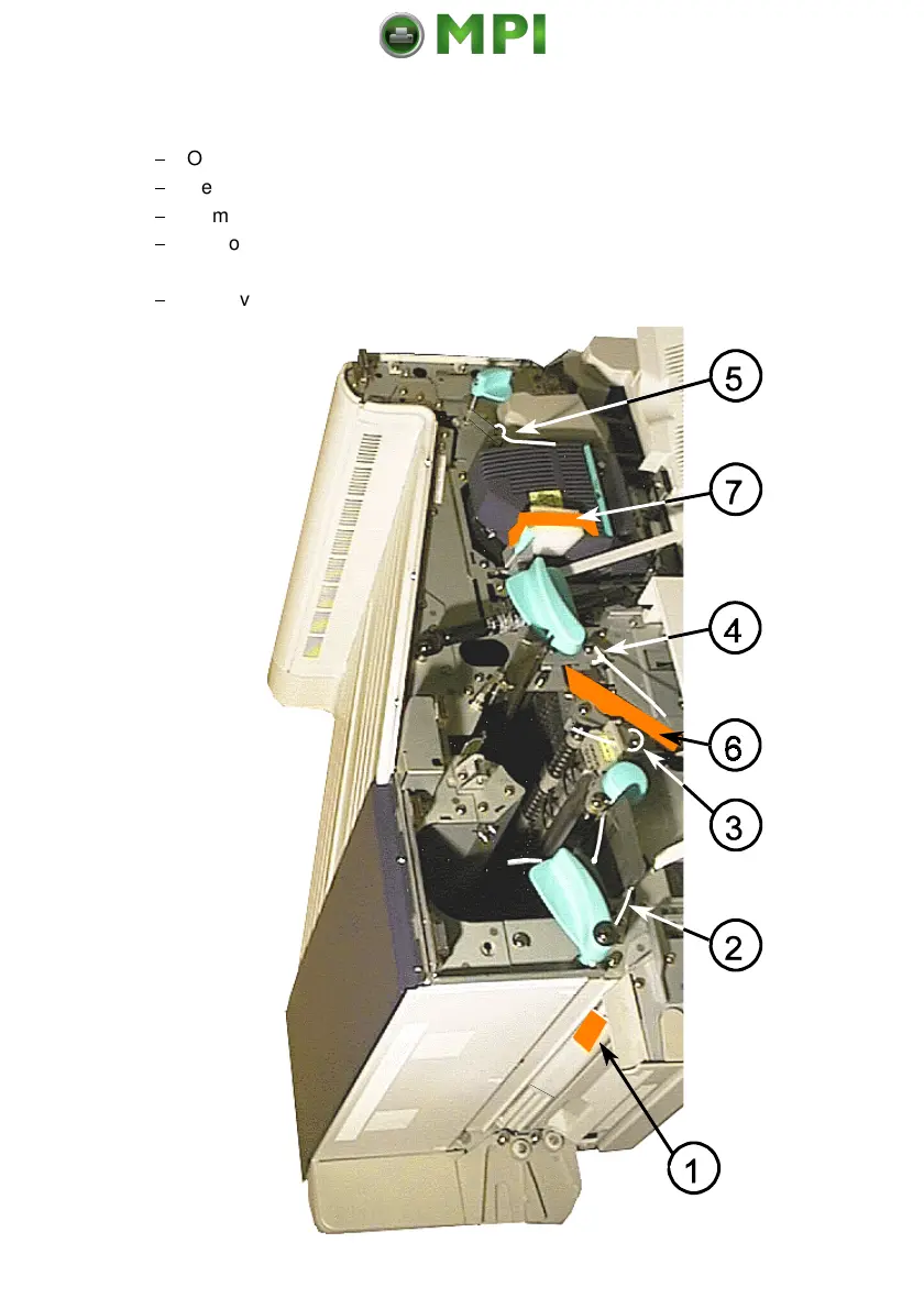 Remove the foam block (7) which locks the lever of fuser.