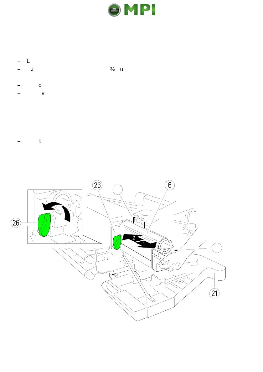 Lift the lever (26) upwards to unlock the Developer Unit.