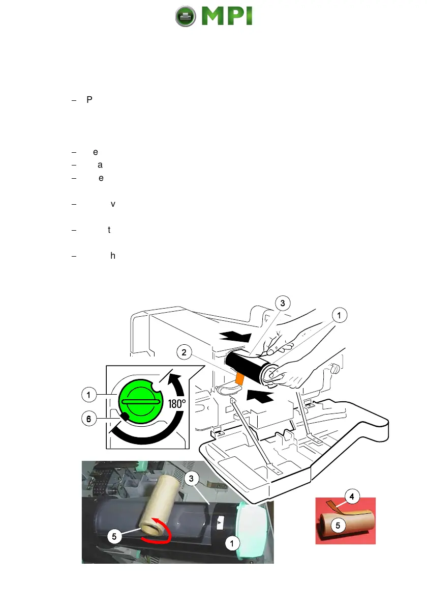 Turn the Toner Cartridge (1) counter clockwise by about 180 degrees until it