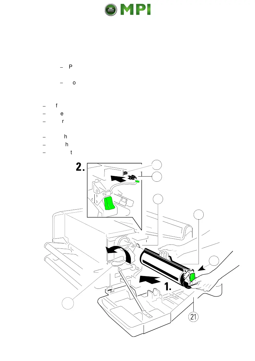 Secure the Developer Unit by pressing down the lever (2).