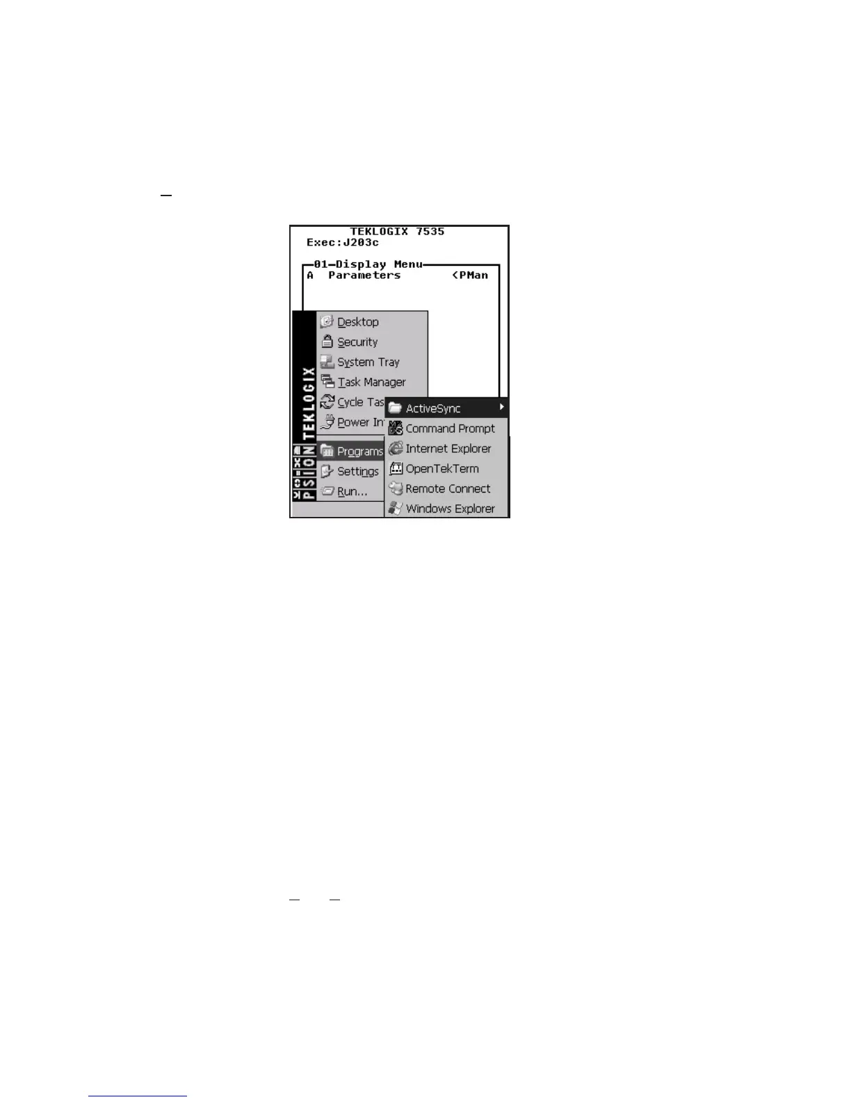 Internet Explorer, installed applications (e.g., Open Tekterm), Remote Desktop Connection or