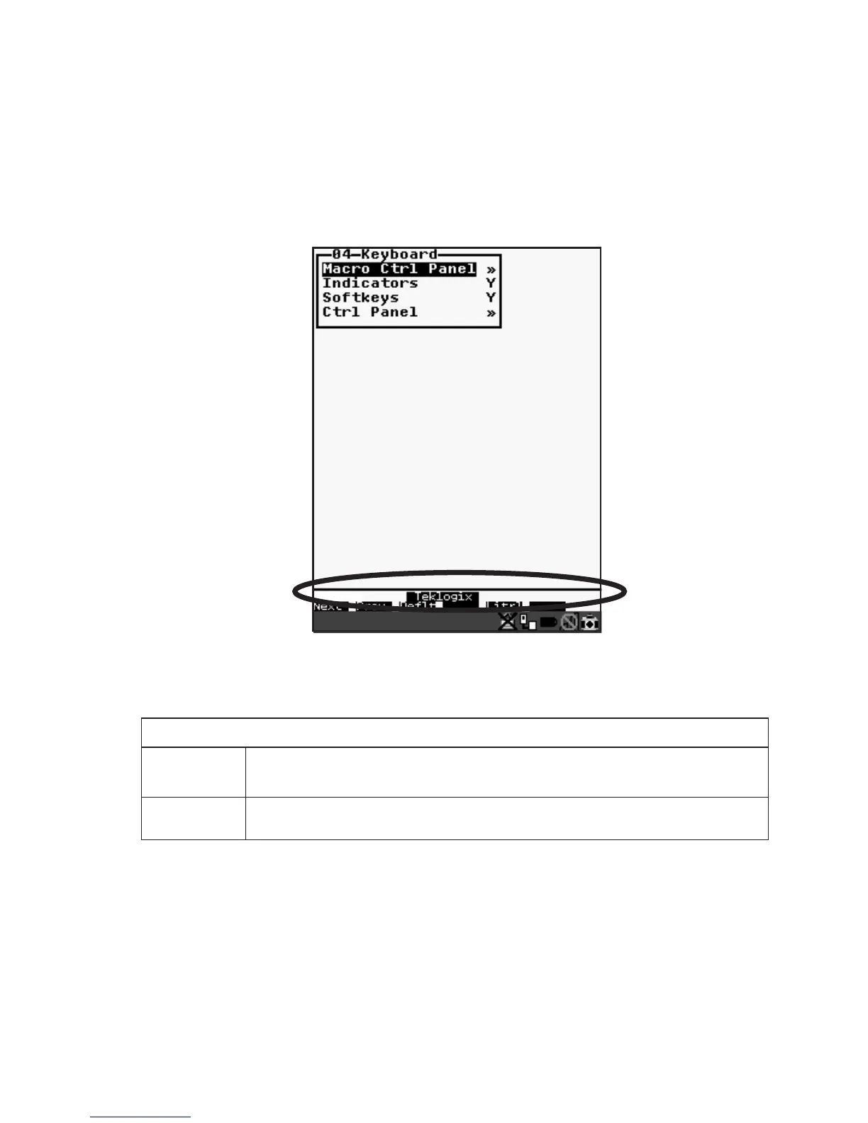 Tekterm provides a status area just above the softkey labels. The status area indi-