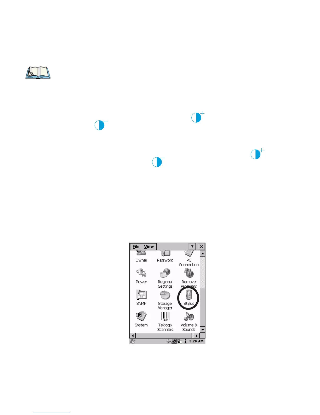 play contrast can also be adjusted using the Windows CE Control Panel.
