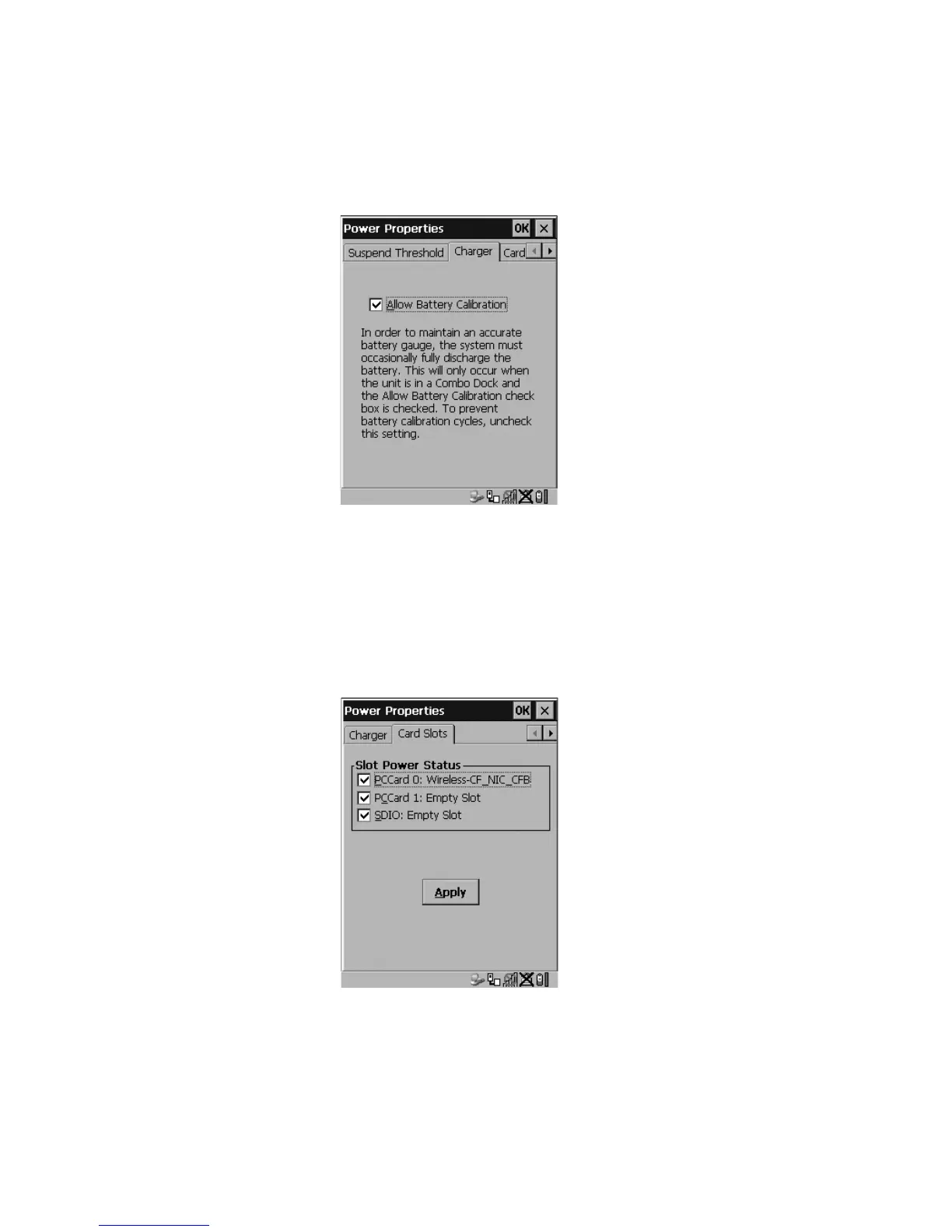 This tab enables or disables power to individual CF, PC Card and SDIO slots in the unit.