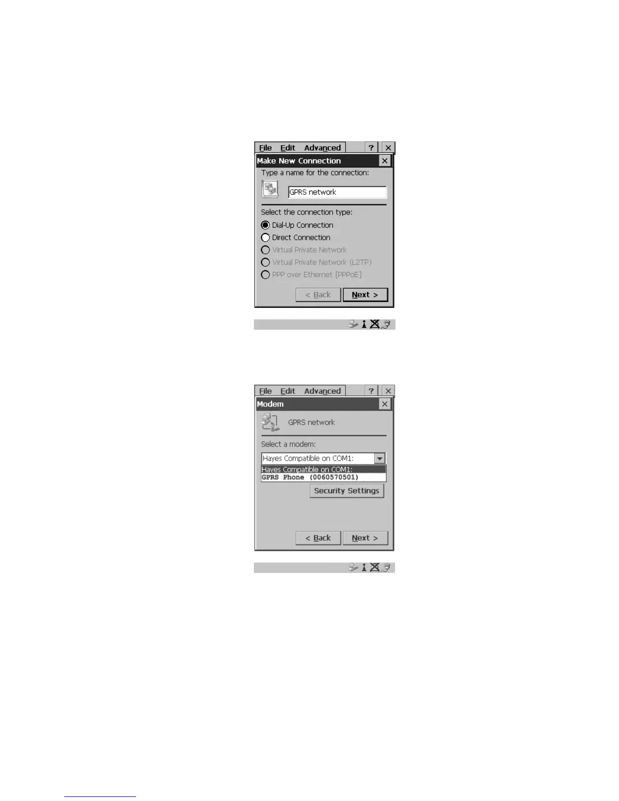 4. Choose the Next button to display the Modem dialog box.