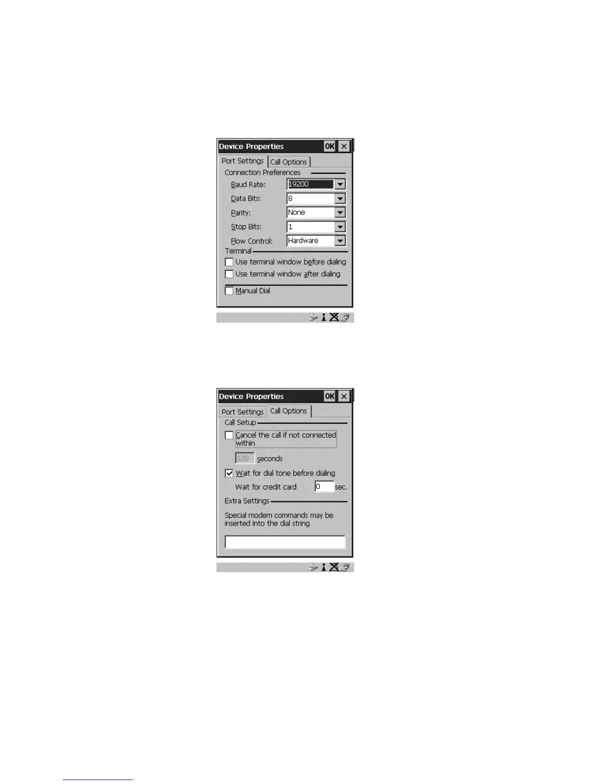 for the Device Properties dialog box. The 7535/7530 then disconnects.