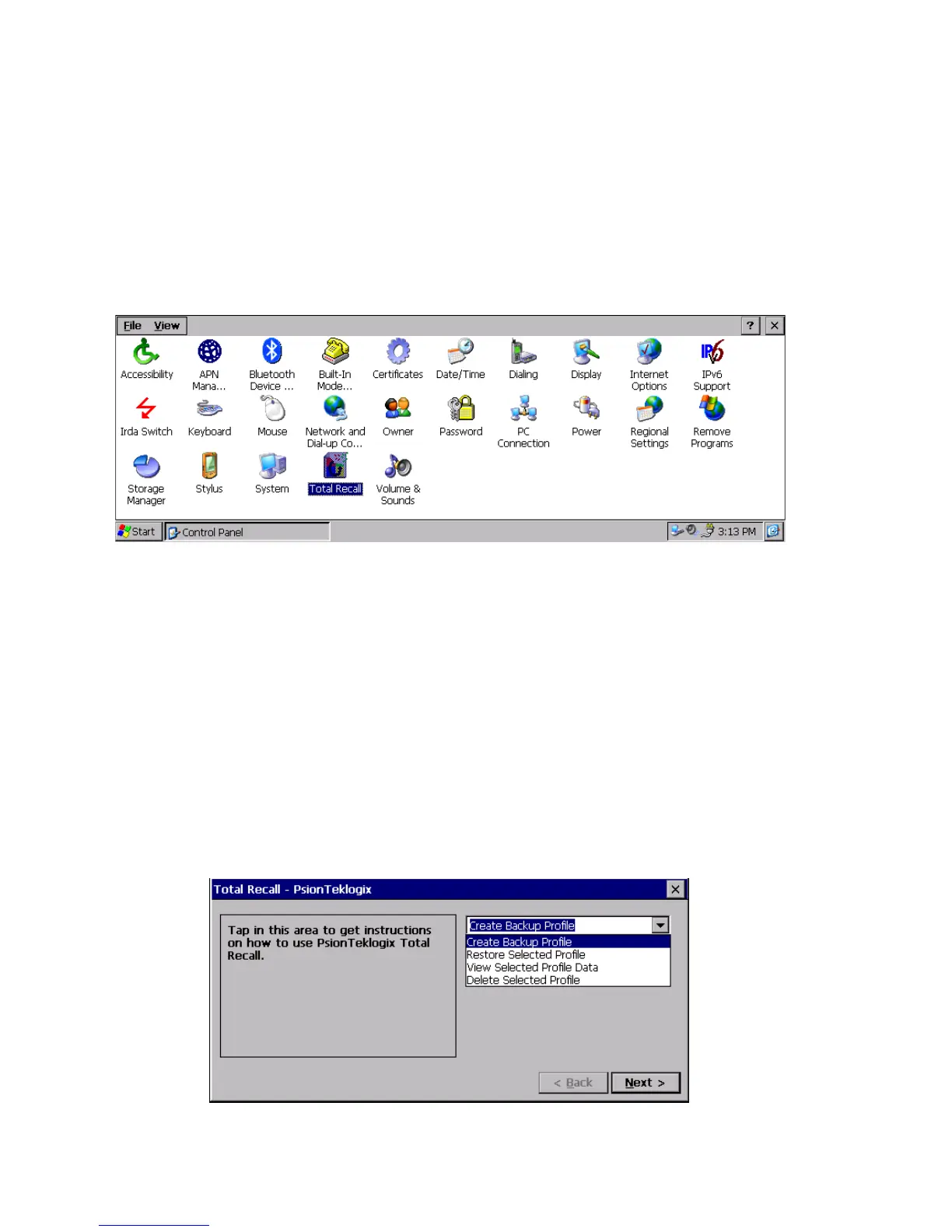 select Restore, View, or Delete a profile, a combo box with profile names will