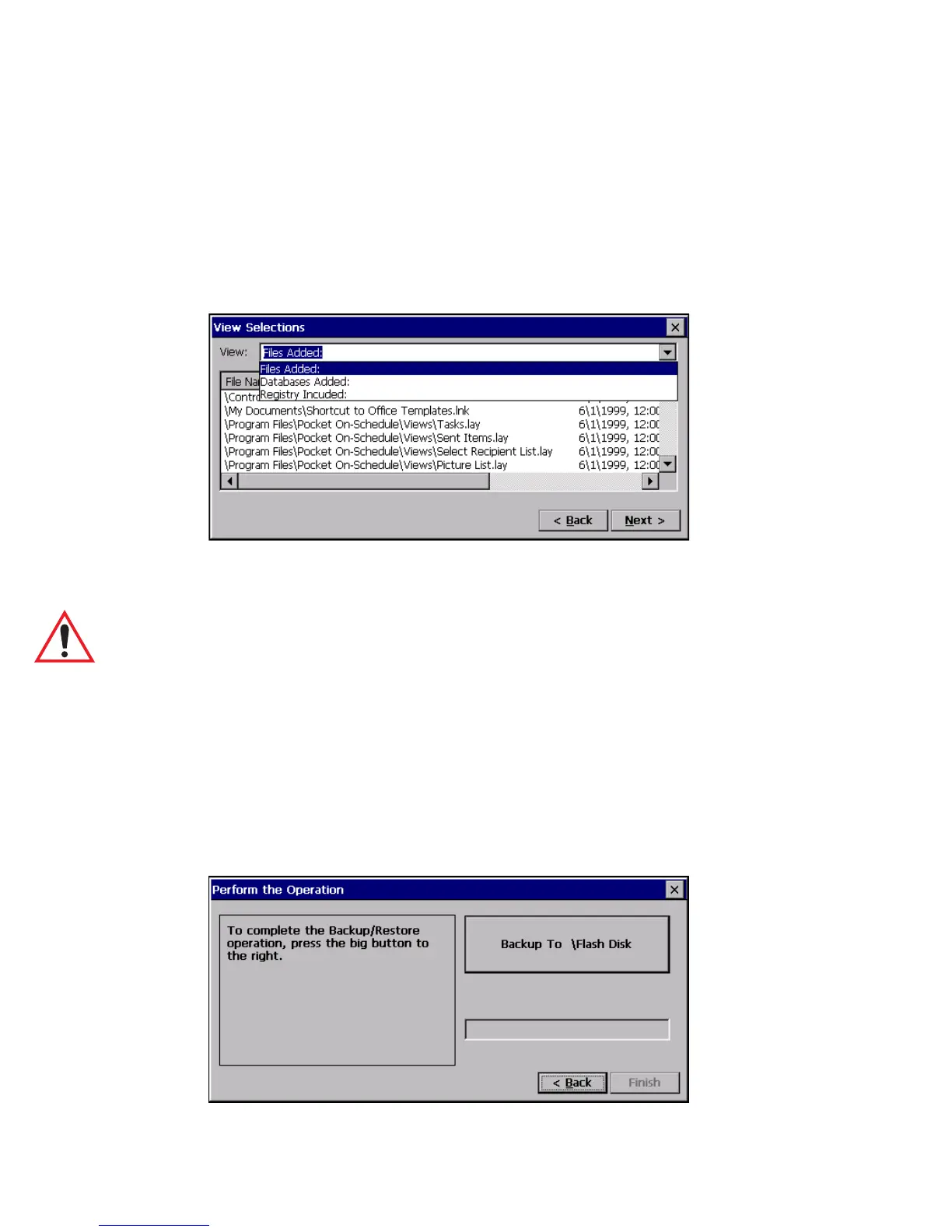 To complete the Backup/Restore process, press the Backup To \Flash Disk button.
