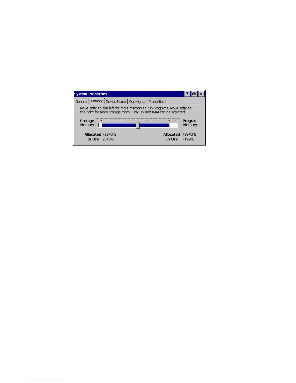 You can see the amount of free memory in the slider bar.