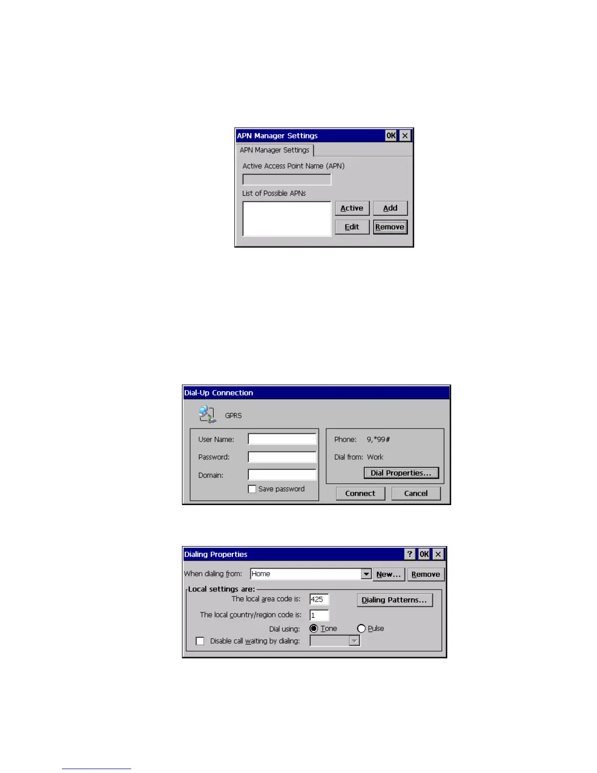 14. Enter the name of the APN, as supplied by the GSM/GPRS service pro-