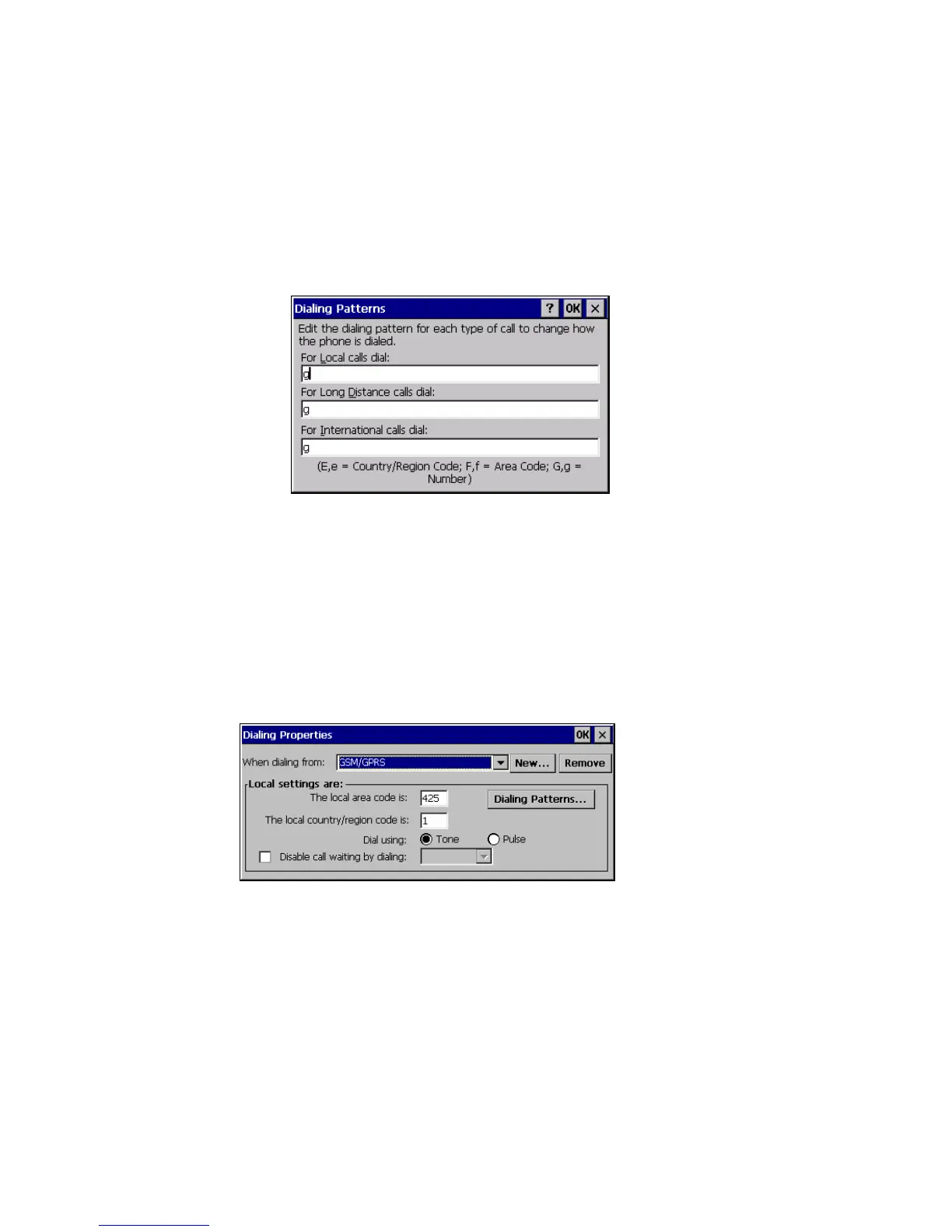23. Press the OK button. The Dialing Properties dialog reappears.