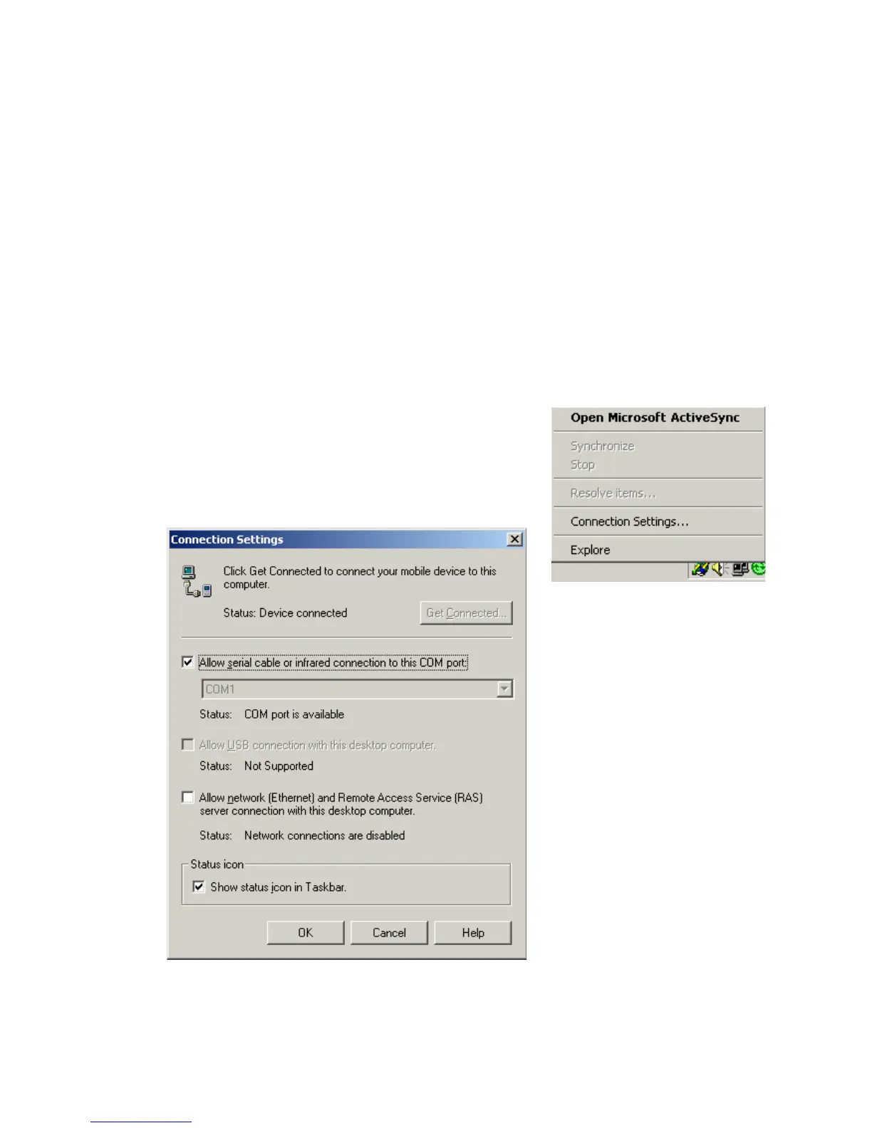 • Right-click the ActiveSync icon and