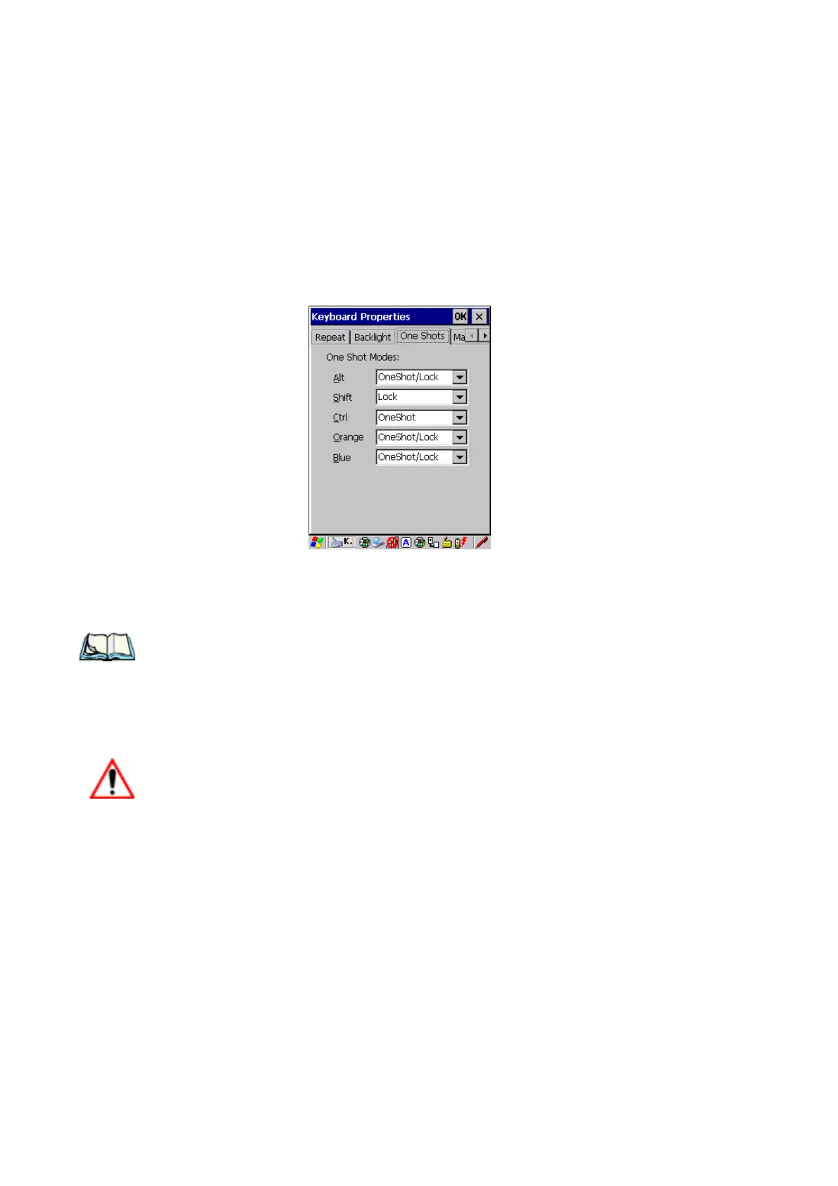 • In the Keyboard Properties dialog box, open the One Shots tab.