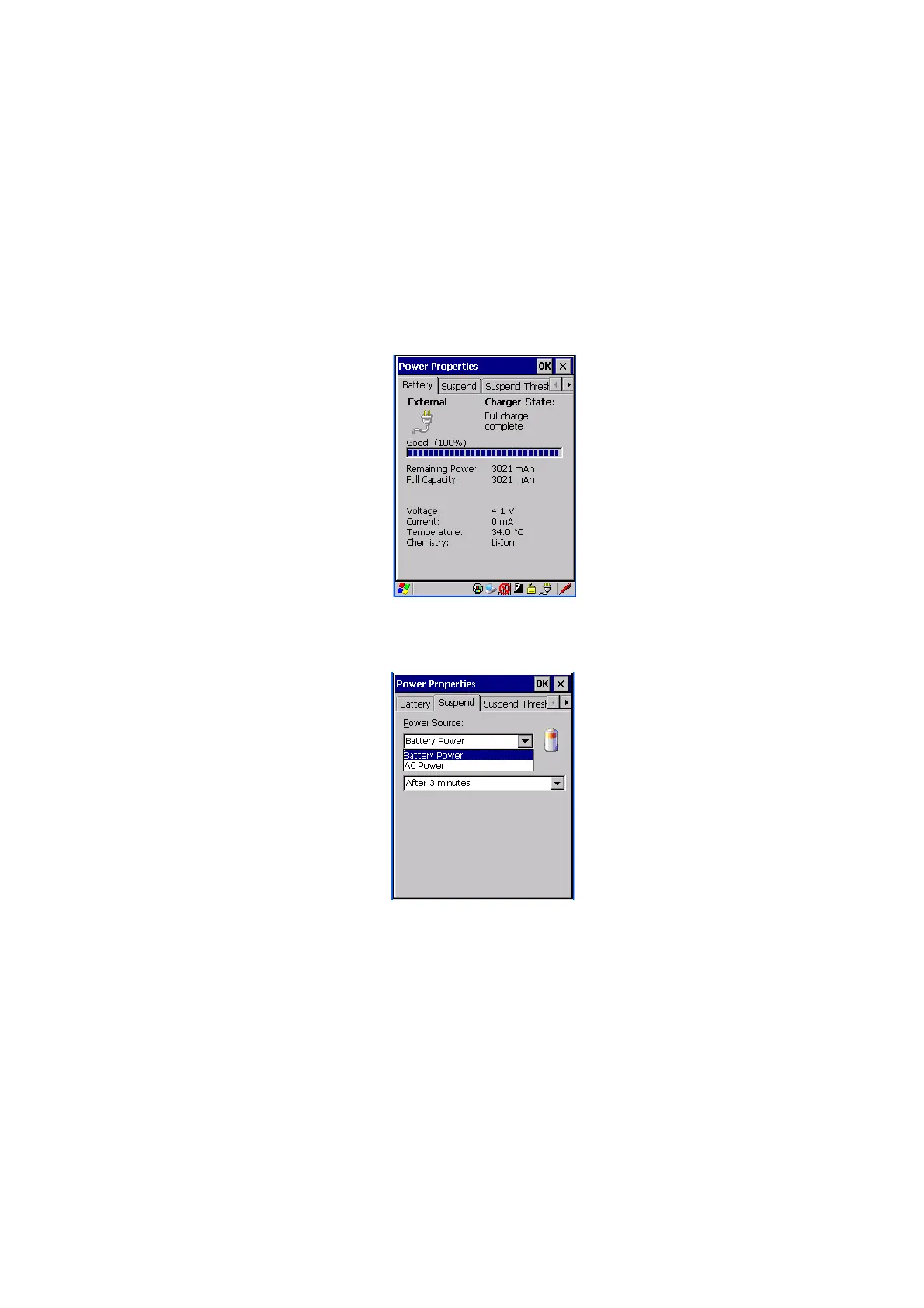 •In the Power Properties dialog box, open the Battery tab to view battery