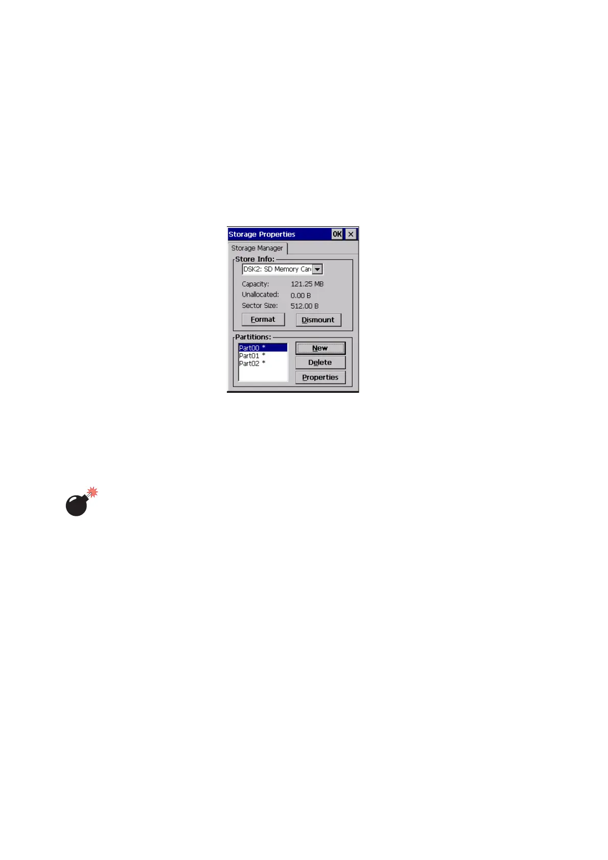 4. Press the Dismount button to dismount the memory card. All partitions